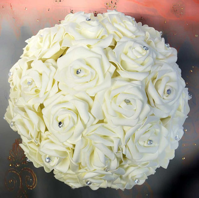 White/ Ivory - Artificial Foam Rose Half Moon Pomander (12" Diameter)