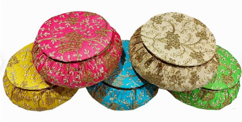 Description Customer Reviews Shipping & Returns Description Handmade Matki box for wedding, sangeet, mehandi or any occasion favor. Colors: Mixed colors Dimension: 5" diameter x 3" height 0 Reviews This product hasn't received any reviews yet. Be the first to review this product! Write a Review Shipping & Returns For Rental and Purchase items Unless specified in product description page, most items fall under our standard shipping policy for rental and purchase items. Custom Product Tab No additional details related this product(s)